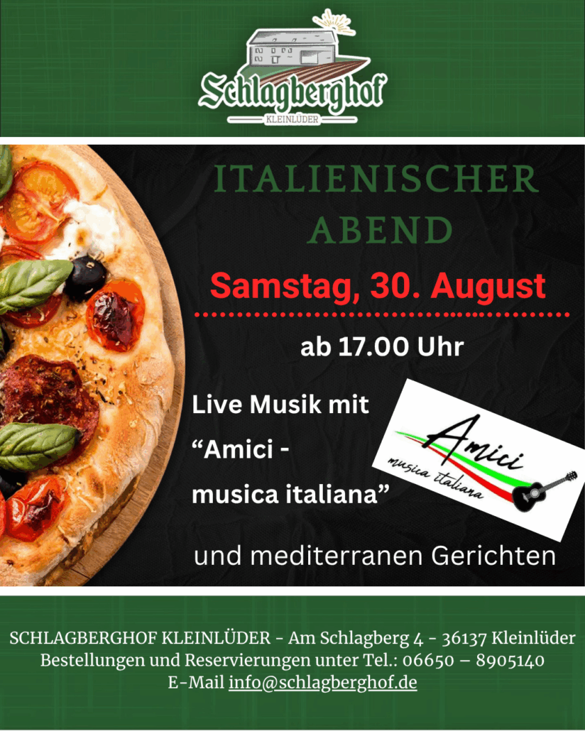 https://schlagberghof.de/wp-content/uploads/2025/08/Flyer-30.08.2025.png13501080jschoenherrhttps://schlagberghof.de/wp-content/uploads/2023/11/schlagberghog-logo-2023.pngjschoenherr2025-08-11 16:03:412025-08-11 16:03:41Italienischer Abend am 30. August 2025